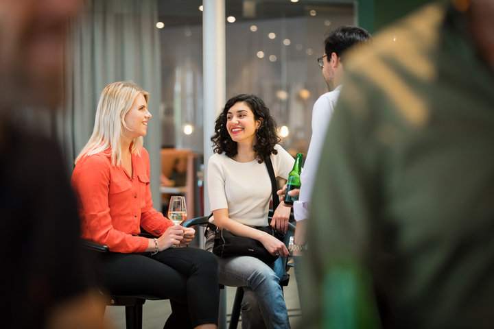 ‘Als je nu kijkt naar de openbare ruimte op de derde verdieping, dan vind ik dat geweldig, al die reuring, echt een openbare plek! Dagelijks zie ik daar collega’s en andere huurders voor een gesprek en kop goede koffie. Ik ervaar